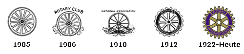 Die Kindheit des Paul Harris Paul Harris wurde am 19. April 1868 in Racine geboren, einer kleinen Stadt in Wisconsin in der Nähe des Lake Michigan. Er wuchs bei seinen Großeltern in Wallingford, Vermont, auf. Grund hierfür war das Scheitern des Vaters in der Selbstständigkeit, was ihn in finanzielle Engpässe brachte. Harris’ Eltern blieb nichts anderes übrig, als die beiden Söhne Paul (drei Jahre) und Cecil (fünf Jahre) den Großeltern zur Erziehung zu überlassen. Paul Harris und sein Bruder erlebten bei den Großeltern eine normale Kindheit auf dem Lande. Harris fing im jungen Erwachsenenalter ein Studium der Rechtswissenschaften an, welches er 1891 an der State University of Iowa abschloss. Ein Lehrer von Harris sagte einmal, um als Rechtsanwalt Erfolg zu haben, müsse man erst einmal fünf Jahre in einer kleinen ländlichen Stadt arbeiten, um sich dann der Großstadt stellen zu können. Dies war jedoch nicht Harris’ Weg. Er wollte keinen konventionellen Weg gehen und ging nach dem Studium nicht in seinen erlernten Beruf, sondern begab sich auf eine fünfjährige Reise. In dieser Zeit war er nicht nur in amerikanischen Städten unterwegs, sondern fuhr auch nach Übersee. Er besuchte England, Irland, Frankreich, die Schweiz, Österreich, Deutschland und Belgien. Im Jahre 1896, nach fünfjähriger „Städtereise“, ließ sich Harris in Chicago nieder, um sich eine Existenz als Rechtsanwalt aufzubauen. Es stellte sich relativ schnell heraus, dass der Aufenthalt in Chicago eine harte Zeit werden würde, da ihm der Zugang zur Geschäftselite Chicagos versagt blieb. „I made my meager resources stretch as far as I could but to get started in the practice of law was more difficult than I had expected it to be.” Es gab laut seiner Aussagen drei verschiedene Typen von jungen Anwälten: Die einen hatten eigenes Geld oder Geld aus der Familie, die anderen hatten einflussreiche Freunde und die dritten, zu denen sich Harris zählte, kamen gerade so über die Runden. Er stellte sich in jener Zeit immer wieder die Frage, wie er als Junge vom Land, der es gewohnt war, nette Nachbarn zu haben, in einer Stadt wie Chicago ohne soziales Netzwerk überleben könne: „Everywhere there were people but nowhere a familiar face.” Harris wurde immer mehr bewusst, wie wertvoll es ist, Freunde zu haben. In ihm setzte sich immer mehr der Gedanke fest, dass viele tausend junge Männer, die vom Land in die Stadt kamen, das gleiche Problem hatten. Harris kannte jedoch persönlich nur wenige von ihnen, so dass er auf die Idee kam, man müsse diese jungen Männer zusammenführen. Die Gründung des ersten Rotary Clubs Am 23. Februar 1905 setzte er seine Idee in die Praxis um. Harris lud drei Geschäftsfreunde zu sich ein. Sylvester Schiele (Kohlenhändler) war zu jener Zeit sein bester Freund in Chicago, er wurde auch Präsident des ersten Rotary Clubs. Gustavus Loehr (Bergbauingenieur) und Hiram Shorey (Konfektionär) waren die beiden anderen der ersten Runde, sie blieben jedoch nicht lange im Club. Die Treffen wurden abwechselnd in den Geschäftsräumen der Mitglieder abgehalten, in einer Art Rotationsverfahren, wodurch auch der Clubname Rotary entstand. Später traf man sich abwechselnd in Restaurants und Hotels. Charakteristisch für Rotary war, dass aus jeder Berufsgruppe nur einer Mitglied im Club werden konnte, was bis zum heutigen Tag noch weltweit praktiziert wird. Manfred Wedemeyer stellt sehr deutlich das Berufsgruppenprinzip dar, das die heutigen Service Clubs immer noch praktizieren. „Um den Freundeskreis und vielleicht auch die Geschäftstätigkeit nach den verschiedenen Seiten hin zu entwickeln, wurde ferner beschlossen, aus jedem Geschäftszweig oder Beruf nur einen hervorragenden Vertreter aufzunehmen.“ Diese Vereinbarung hatte in jener Zeit auch eine existenzielle Bedeutung. Chicago war damals ein Spielball des unregulierten Kapitalismus, so dass es nur klug war, die Berufe möglichst heterogen zu halten, um einem internen Konkurrenzkampf entgegenzuwirken. Die Vermeidung von Konkurrenz in den Zusammenschlüssen war jedoch nicht der alleinige Grund dieser Vereinbarung. Vielmehr wollte man einen Kreis von jungen Männern schaffen, die berufsübergreifend Freundschaft schließen und sich inhaltlich austauschen konnten. „Es ist ein rotarischer Grundsatz, dass jeder aus der Kenntnis seines Berufes, aus der Fülle seiner Lebenserfahrung, aus der Liebe zu seinem Fachgebiet Mitteilung macht, damit alle bereichert werden.“ Das Rotary Emblem Seit 1905 hat sich das Emblem von Rotary, das zu Beginn ein einfaches Rad darstellte, über die Jahre verändert. Ursprünglich kam die Idee des Rades durch das rotierende Prinzip der Treffen zustande.Im Jahre 1905 entwirft Montague „Monty“ Bear, ein Mitglied des Rotary Clubs Chicago, ein mit Stahl beschlagenes, 13-speichiges Wagenrad. Dies sollte zum einen das rotierende Prinzip der Treffen darstellen; zum anderen war es auch ein Symbol der Zeit, da sich damals die Automobilindustrie in ihrer Anfangsphase befand. Das erste Emblem bestand jedoch nur ein Jahr, da sich viele Mitglieder darüber beschwerten, dass das Emblem zu statisch sei und etwas Bewegung bräuchte. Daraufhin fügte Monty im Jahre 1906 Wolken beidseitig unter das Rad, welche von einigen Mitgliedern jedoch als Staub unter dem Rad identifiziert wurden. Als es im Jahre 1910 bereits 16 Clubs in den Vereinigten Staaten gab und die „National Association of Rotary Clubs“ gegründet wurde, sollte sich diese Veränderung auch im Emblem verdeutlichen. ![]() Im Jahre 1912 war Rotary bereits international aktiv, woraufhin auf dem ersten Weltkongress in Duluth/USA ein neues Emblem entworfen wurde. Dieses neue Rad hatte nun zusätzlich Zähne. „Ein Zahnrad wird bereits Ende 1910 vom R.C. Pittsburgh als Clubabzeichen verwendet. Königsblau und Gold werden die Farben Rotarys.“ Die Farben werden wie folgt erläutert: „The blue stands for constancy of purpose, and the gold for the pur
